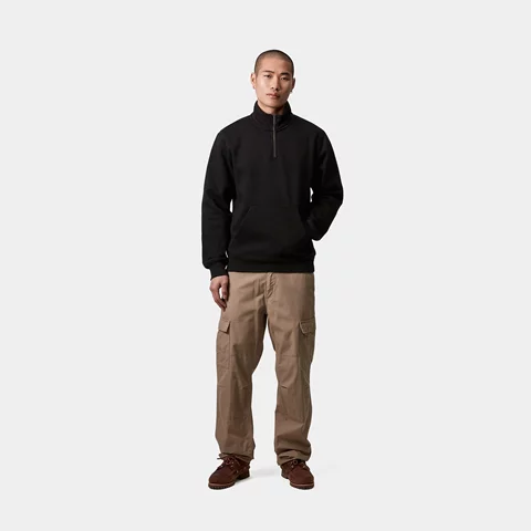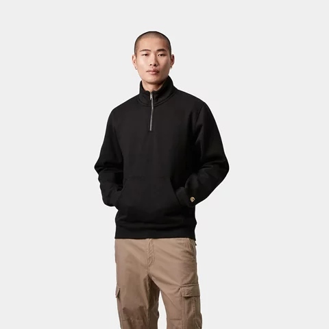 Το Chase Neck Zip Sweatshirt είναι κατασκευασμένο από βαριά πολυβαμβακερά υφάσματα σε κανονική γραμμή. Το ύφασμα είναι επίσης βουρτσισμένο, δίνοντάς του ένα υπόστρωμα που μοιάζει με fleece. Το προϊόν διαθέτει ψηλό λαιμό με φερμουάρ και μανίκια ράγκλαν, ενώ διαθέτει λεπτομέρεια με ραφές flatlock. Ένα κεντημένο λογότυπο 'C' εμφανίζεται στο αριστερό μανίκι.